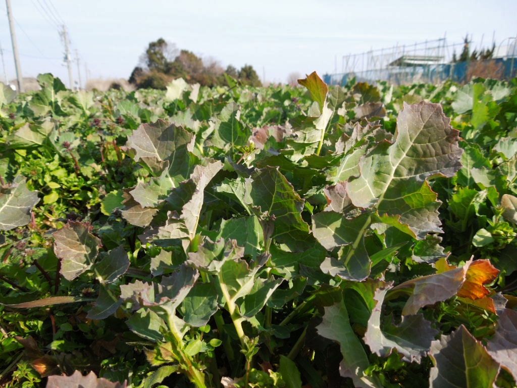「なたね」たちの葉の一部が赤紫色になっているのは、厳しい寒さに耐えてきた証です。