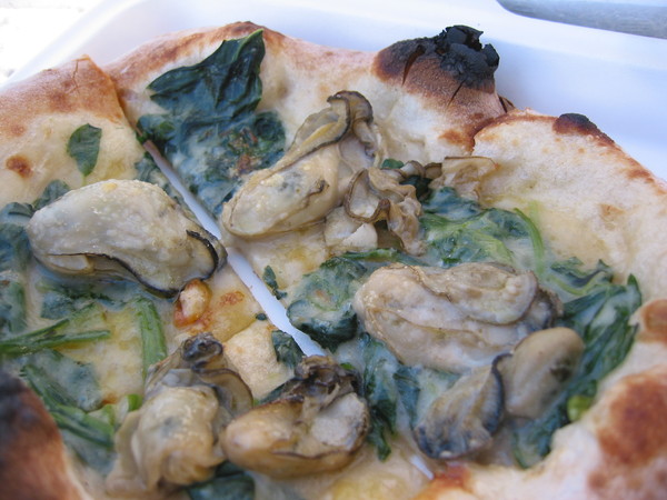 本日のお薦めは、「カキのクリームピッツァ」。岡山県日生産の牡蠣を使った旬の味です。