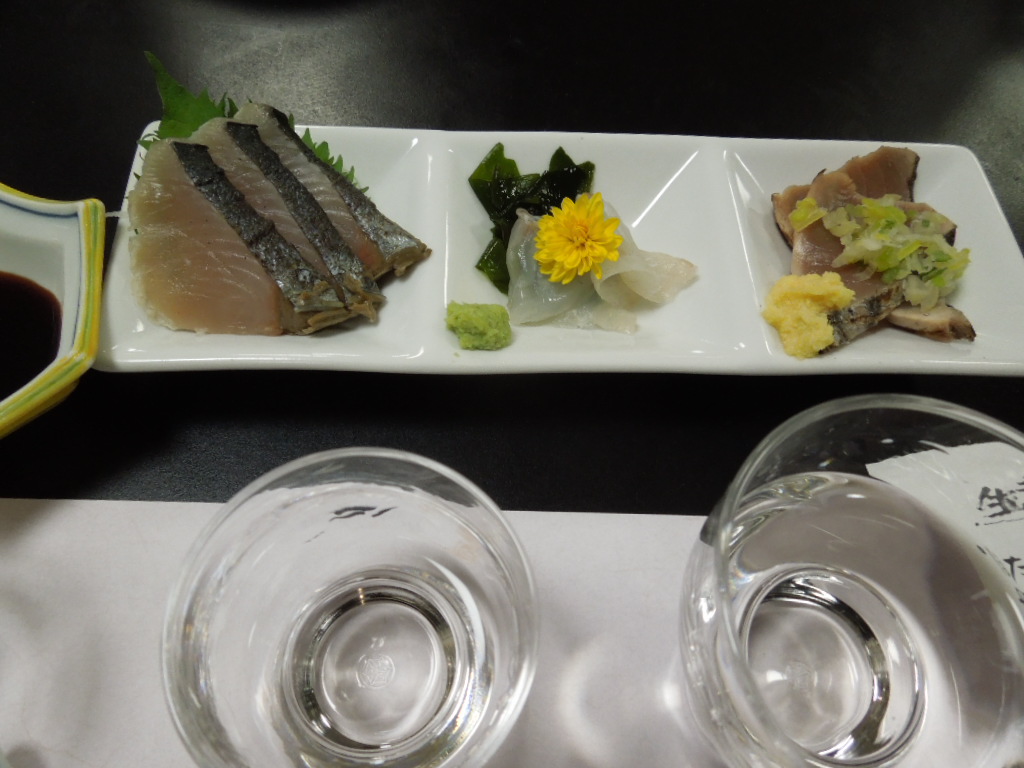 鰹刺身 鰆の焼き霜造り 鱸の洗い