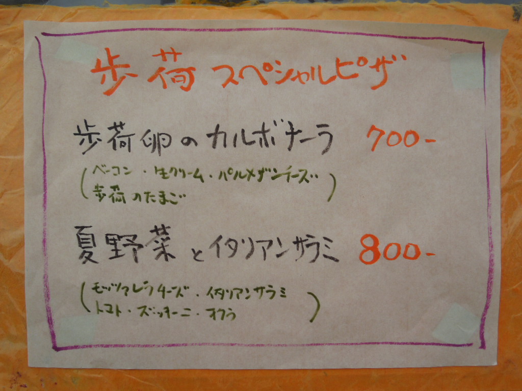 定番マルゲリータ、絶品4種のチーズに加え、本日の ”歩荷スペシャル” 。