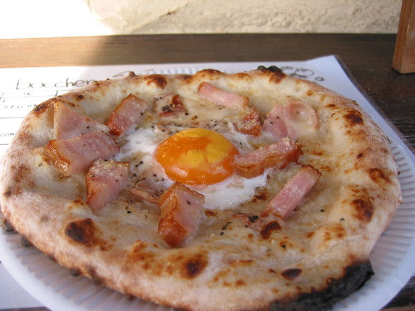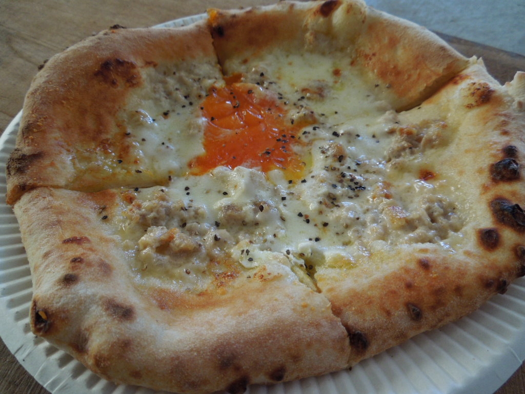 マルゲリータも絶品ですが、やはりお薦めは「歩荷の卵のとろとろカルボ」。