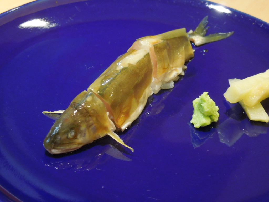 ひらめ薄造り、のどぐろの塩焼き等々旬の肴。天然若鮎の姿寿司、絶品豆アジ、長崎の天然
