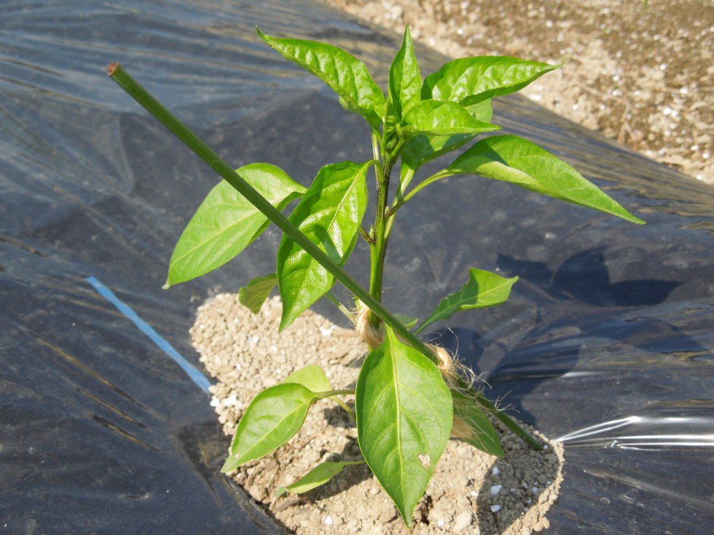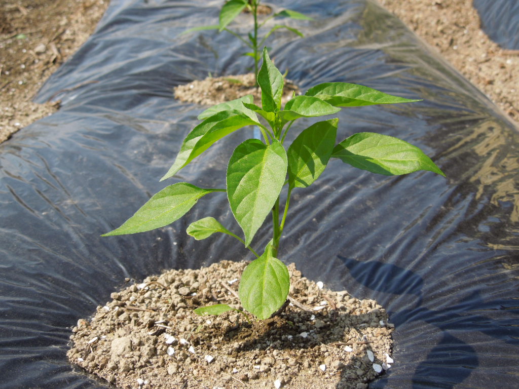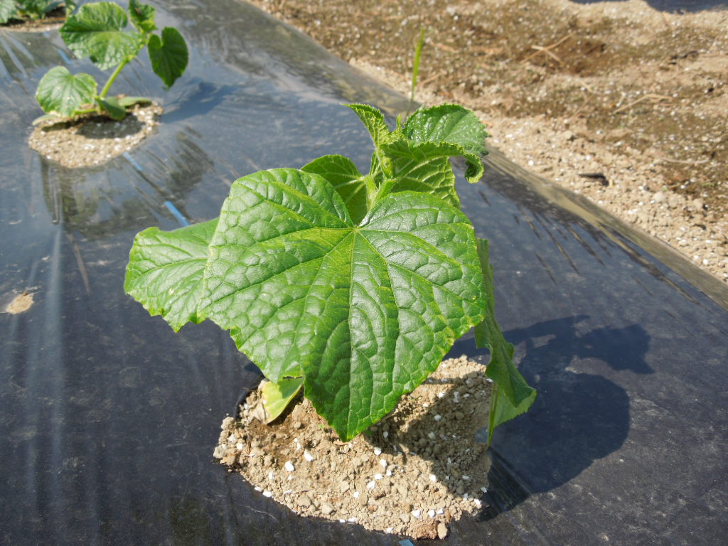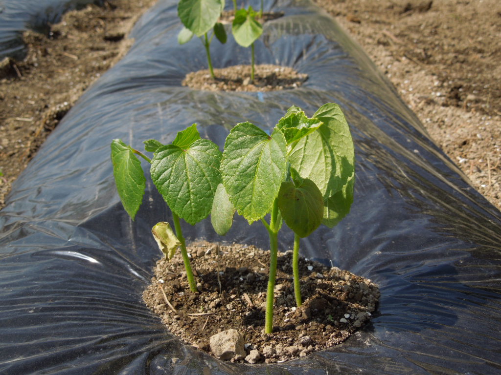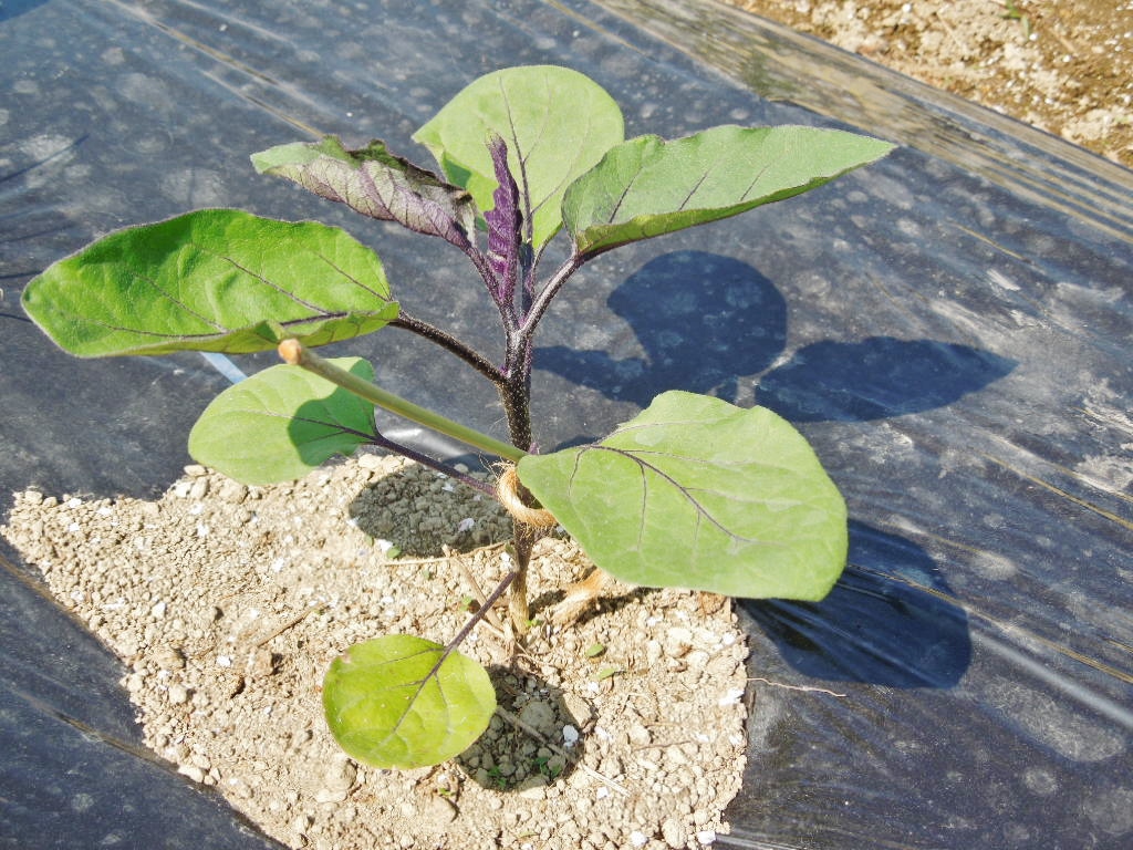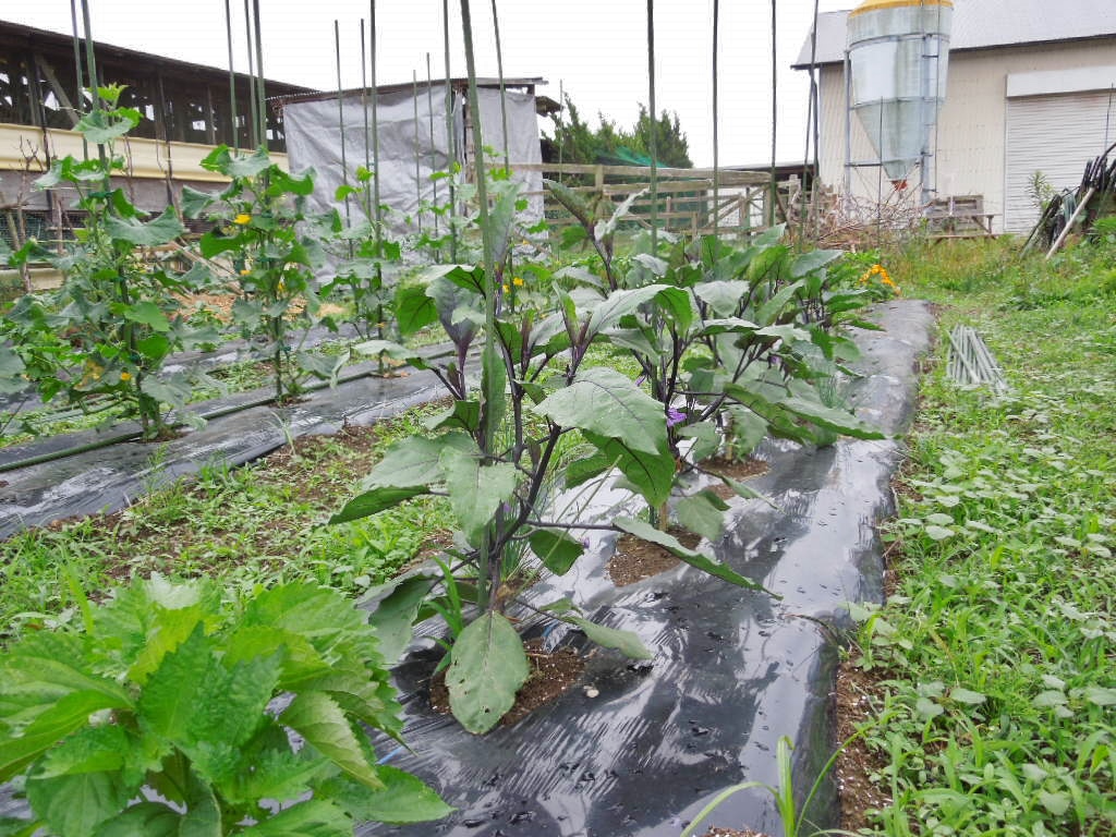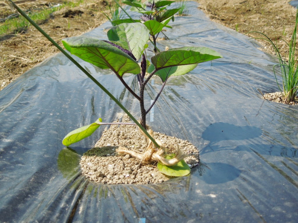 GWに定植した「夏野菜」の苗、水ナスと長ナス。