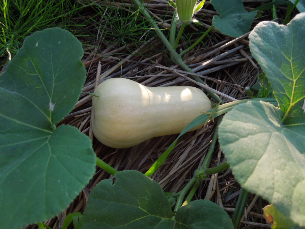 「バターナッツ」の苗をいただいたので畑の隅に植えておいたら、今のところは意外と良い出来。