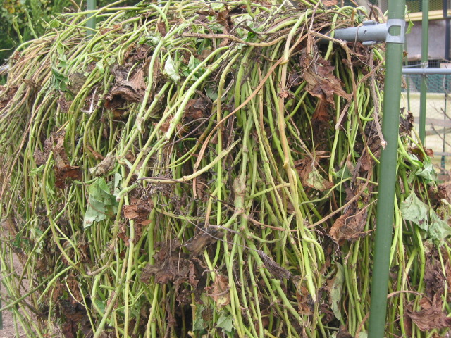 収穫後の金時畑に残された大量の芋づる。この芋づる、生草が極端に少なくなる冬場には、メイにとっての大事なご馳走。天日で乾燥させて、ひと冬分の「干し芋づる」を作ります。