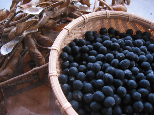 お正月用の「丹波黒豆」が、今年も実入り良く育っています。「枝豆」で食べても美味しい「丹波黒豆」。大粒で甘みが強く、この時期だけの農家のご馳走です。
