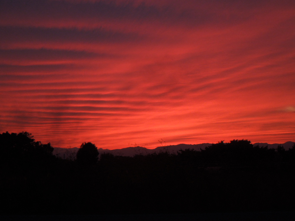 「秋の夕暮れ」。真紅の夕焼け。今日も感謝の一日です。