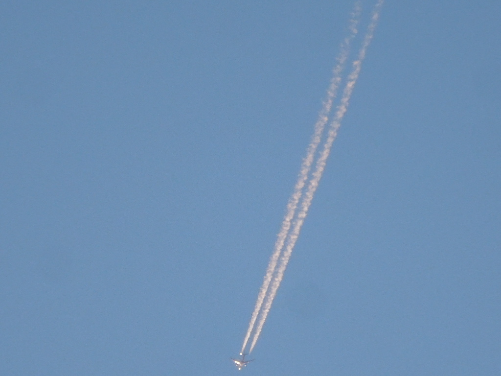 「ひこうき雲」。冬空をどこに向かっていくのかな。